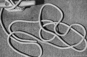 He watches the metal dragon leave long and white clouds behind it. At first, he thinks they look like a tail. No, they look like fishing ropes, cast against the blue-blue sky.
